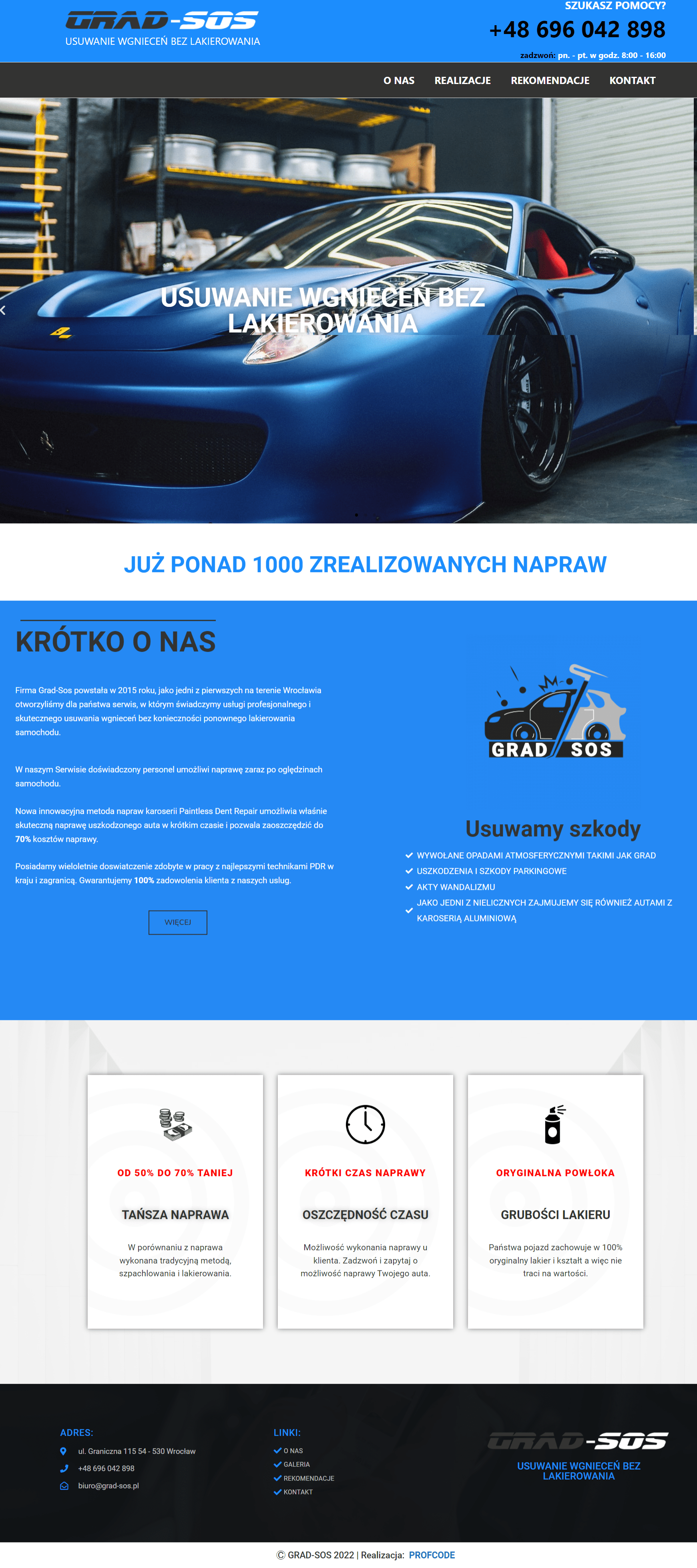 Strona internetowa oparta o system zarządzania treścią CMS WordPress, Pełna responsywność, Galeria, Formularz kontaktowy z zabezpieczeniem antyspamowym, Mapa Google z siedzibą