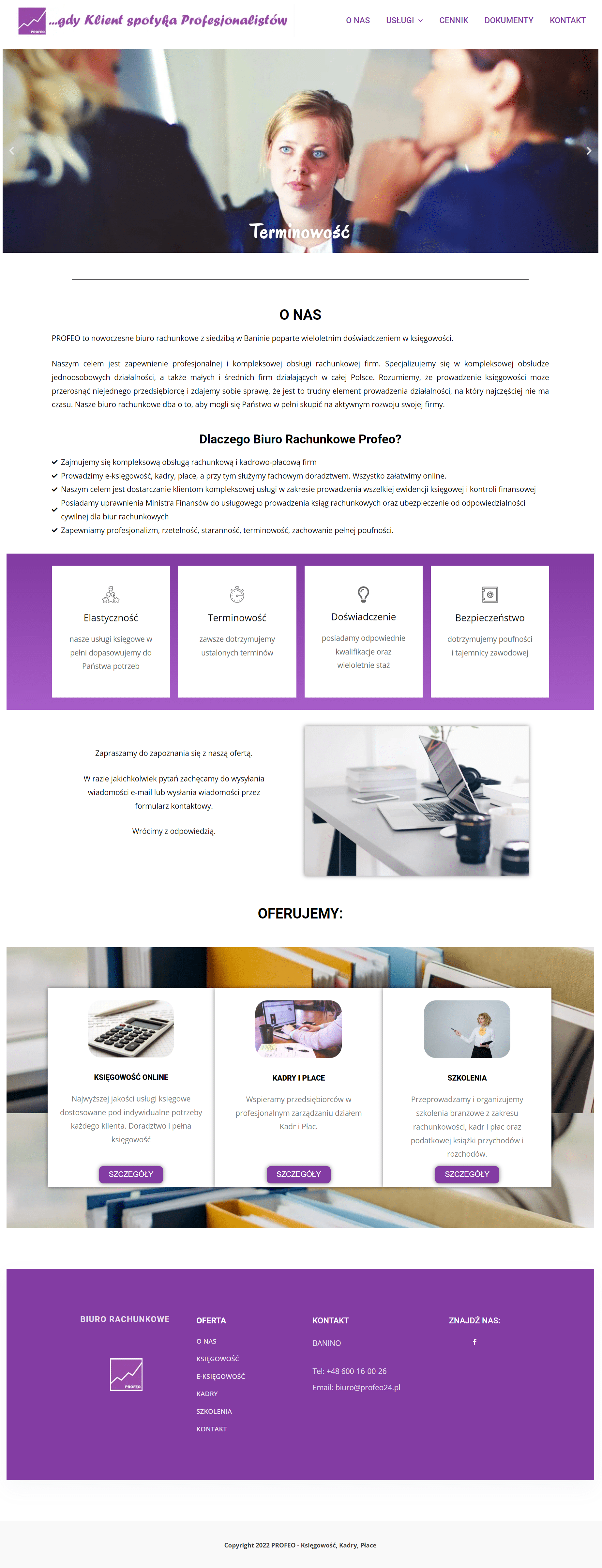 Strona internetowa oparta o system zarządzania treścią CMS WordPress, Pełna responsywność, Formularz kontaktowy z zabezpieczeniem antyspamowym, Mapa Google z siedzibą